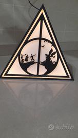 Lampada a luce calda triangolare con disegno dei tre fratelli e la morte da Harry Potter.