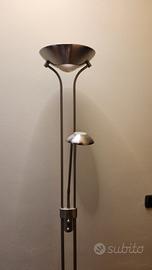 vendo causa trasloco lampada doppia da terra e da lettura, in acciaio nichelato, doppia lampadina, intensità luminosa regolabile. La lampada da lettura è completamente regolabile e orientabile. lampadine LED funzionanti.
