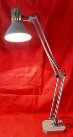 Vendo n. 1 lampada da tavolo industriale Longoni anni '70, colore grigio, marca brevetto Longoni, in ottime condizioni, base in ferro, misura altezza compresa base tutta aperta 98 cm, altezza del braccio sulla base 50 cm, altezza del secondo braccio che porta alla lampada compresa lampada 64 cm, senza lampada 46 cm, lampada misura altezza 18 cm, diametro 16 cm, base in ferro misura 18,5 x 12 cm, cavo lungo 1,40 m, peso 6,5 kg. Spese di spedizione 14 euro.