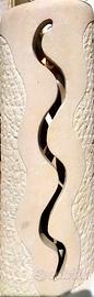 Lavorazione artistica in pietra leccese per questo set arredo interno, composto da piantana e luci comodini.