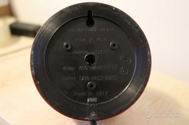 Vendo iconica lampada da tavolo modello Eclisse, disegnata da Vico Magistretti per Artemide nel 1965 (Premio Compasso d'Oro 1967). Un pezzo irrinunciabile del design industriale italiano, perfetto per arredamento vintage, modernariato o per dare un tocco Space Age alla casa. Caratteristiche principali: Colore: Rosso vibrante (classico originale). Funzionamento: La particolarità di questa lampada è il paralume interno rotante che permette di "oscurare" la fonte luminosa, regolando l'intensità della luce proprio come in un'eclissi. Versatilità: Può essere utilizzata sia come lampada da tavolo che montata a parete (applique). Condizioni: Ottime condizioni estetiche e funzionali (come da foto). Cavo e spina originali/perfettamente funzionanti. Dettagli: Materiale: Metallo verniciato. Dimensioni: Altezza circa 18 cm, diametro 12 cm. Ideale per comodini, scrivanie o come pezzo da esposizione.