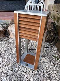 Il modello è la versione da terra, è dotata di lamelle che diffondono la luce dall’interno, come il sole attraverso una persiana. Elemento in casa di design, stupenda.
