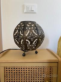 Lampada in stile etnico realizzata a mano in ferro battuto e tela, perfettamente funzionante.