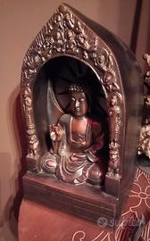 Vendo lampada etnica, con Buddah. Altezza 34,5 cm Larghezza 19 cm Profondità 18,5 cm Purtroppo la luce che fuoriesce dal retro del Buddah ha smesso di funzionare all'improvviso, e non riuscendo ad aprire "il sarcofago" non riesco a sostituirla. (è stata usata pochissimo, avrà lavorato al massimo 1 ora in totale) Il rumore quando si collega il trasformatore si sente regolarmente, segno che il meccanismo funziona, andrebbe solo sostituita la lampada interna se si riuscisse ad aprire in qualche modo. Il prodotto però è come nuovo. Non presenta segni o difetti visibili, bello anche come oggetto ornamentale a prescindere dalla luce. Trasformatore incluso. Preferibile scambio a mano zona Bari e provincia. Per altre info resto a disposizione.