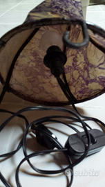 Lampada da tavolo o comodino in pelle con disegni viola stile etnico, completa di portalampada. Filo con interruttore nero. Nuova mai usata. Funzionante. No spedizioni.