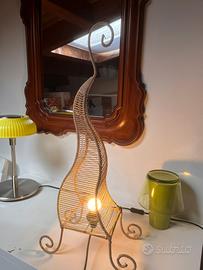 Lampada etnica in metallo e corda color beige in buone condizioni e funzionante