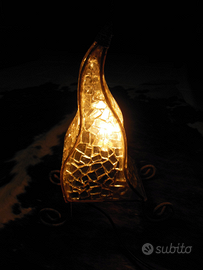 Lampada da tavolo o comodino in vetro trasparente stile etnico, completa di portalampada. Filo con interruttore nero. Nuova mai usata. Funzionante.