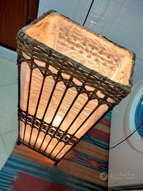 lampada etnica in legno e carta con lampadina attacco e14.Perfetta.h 66x l 24