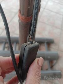 in bambù, bisogna cambiare il filo perché è stato mordicchiato da un coniglio