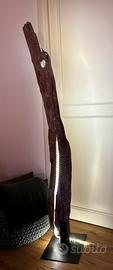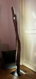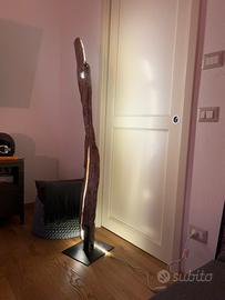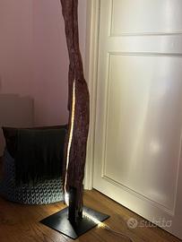 Questa lampada è realizzata a mano utilizzando autentico legno levigato dal mare. La struttura poggia su un piedistallo in ferro lavorato artigianalmente, che dona stabilità e un tocco contemporaneo, creando un elegante contrasto tra la solidità del metallo e il calore del legno.