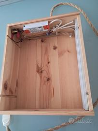 lampada a led fatta a mano su scatola nipozzano. ideale per arredamento ristorante o agriturismo.