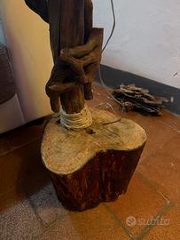 Lampada fatta interamente a mano con una lavorazione e lucidatura connolio di oliva, tutto interamente naturale.
