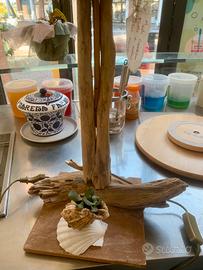 Lampada fatta a mano pezzo unico In legno con paralume realizzato ai ferri