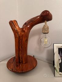 Lampada fatta artigianalmente con legno di ulivo levigata a mano e verniciata con color ciliegio.