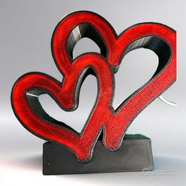 Lampada decorativa a LED con cuori intrecciati in 3D, realizzata con struttura nera e inserto rosso traslucido che diffonde una luce calda e avvolgente. Design moderno ed elegante, ideale per comodini, mensole, scrivanie o come idea regalo romantica.