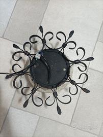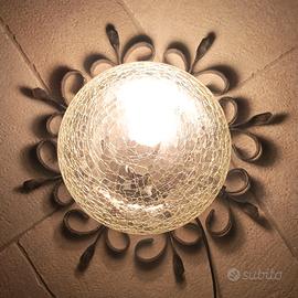 Plafoniera da soffitto o parete in ferro battuto e vetro stile rustico diametro 40 cm, attacco E27.