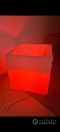 Cubo lampada fioriera in plastica bianca con illumimazione interna al momento rossa misura 40x40 non e flos , artemide kmoll cassina roma centro ritiro a mano