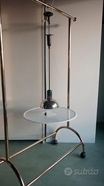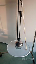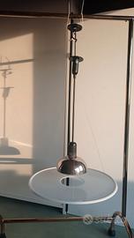 FLOS FRISBI (Mod. 850) – Design Achille Castiglioni, 1978 Esemplare Storico Anno 1983 Descrizione dell'opera: Proponiamo un’icona assoluta del design d’autore: la lampada Frisbi, progettata da Achille Castiglioni nel 1978. Questo specifico esemplare, acquistato nel 1983, rappresenta una rara testimonianza della produzione originale Flos dei primi anni Ottanta. La Frisbi non è un semplice punto luce, ma un sofisticato sistema ottico di precisione. La sua struttura si basa su un disco in polimetilmetacrilato opalino che, grazie a un foro centrale calibrato, permette una tripla distribuzione luminosa: proietta un fascio diretto sul piano sottostante, diffonde una luce morbida nell'ambiente e riflette una parte dell'illuminazione verso il soffitto. Il design "inusuale" e la tecnologia dei materiali (acciaio e polimeri tecnici) la rendono perfetta per ambienti di grandi dimensioni e architetture d'interni ricercate, proprio come le grandi residenze d'avanguardia degli anni '80. Dettagli Tecnici: Provenienza: Collezione privata (unico proprietario, acquisto 1983). Designer: Achille Castiglioni. Produttore: Flos (Etichetta originale presente). Stato di conservazione: Ottimo stato vintage. Il portalampada in acciaio e il disco diffusore sono componenti originali dell'epoca, conservati con cura. Nota per il collezionista: Trovare una Frisbi del 1983 in queste condizioni è un’opportunità rara. A differenza dei modelli attuali, la patina dell'acciaio e la densità del disco opalino di quegli anni hanno una resa visiva superiore, rendendola un investimento sicuro nel mercato del modernariato