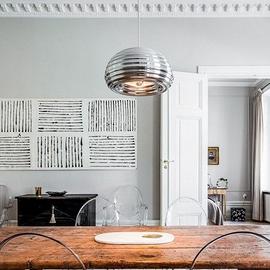 NUOVA IN VENDITA. LAMPADA A SOSPENSIONE DAL DESIGN INDUSTRIALE E ICONICO. DIFFUSORE IN ALLUMINIO LUCIDO DALLE SUPERFICI CURVE CHE DIFFONDE UNA LUCE DIRETTA E BRILLANTE, CON UN CARATTERE TECNICO MA ELEGANTE. IDEALE PER ZONA LIVING, TAVOLO DA PRANZO O AMBIENTI CONTRACT. UN OGGETTO DI DESIGN STORICO CHE UNISCE ESSENZIALITÀ, FUNZIONALITÀ E GRANDE PERSONALITÀ ESTETICA.