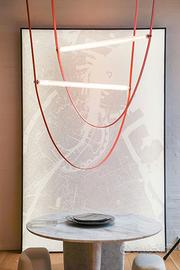 NUOVA IN VENDITA. LAMPADA A SOSPENSIONE DAL DESIGN ESSENZIALE E GRAFICO. CARATTERIZZATA DA UNA LINEA LUMINOSA SOSPESA E DA UN CAVO STRUTTURALE A VISTA CHE DIVENTA ELEMENTO ESTETICO DISTINTIVO. DIFFONDE UNA LUCE MORBIDA E OMOGENEA, IDEALE PER TAVOLI, ISOLI O SPAZI CONTEMPORANEI. UN OGGETTO DI DESIGN MINIMALE E TECNOLOGICO CHE TRASFORMA LA LUCE IN UN SEGNO ARCHITETTONICO PURO.