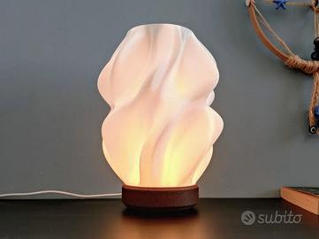 La lampada Flow è ispirata al movimento fluido delle onde: un design organico che sembra scolpito dalla luce stessa. Le sue curve morbide diffondono un bagliore caldo e armonioso, perfetto per chi cerca un complemento d’arredo elegante e rilassante.