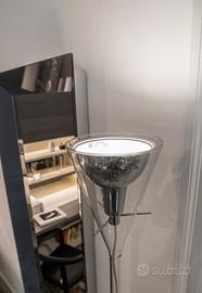 FLÛTE Grande - Lampada da terra nella dimensione più grande con emissione della luce indiretta (dimmerabile), per ambienti interni. Stelo in vetro trasparente, riflettore in alluminio, base e supporto in metallo.Prezzo listino € 2.800