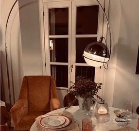 Lampada da terra Arc di Fabio Lenci per Guzzini, base panna e parte alta cromata.