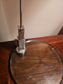 La lampada Fontana Arte "Falena" di Alvaro Siza ha una base in vetro trasparente e un corpo in metallo. Le due ali che proteggono la lampadina sono orientabili, consentendo di dirigere la luce verso l'alto, verso il basso o in entrambe le direzioni a seconda delle esigenze. La lampada offre due intensità di luce, permettendo di regolare l'illuminazione per creare l'atmosfera desiderata.