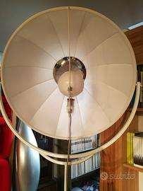 Lampada iconica progettata nel 1907 dallo scenografo, e non solo, Mariano Fortuny ed ancora prodotta dalla ditta Pallucco (TV). Lampada da terra, orientabile e regolabile in altezza struttura verniciata a polveri epossidiche bianco RAL 9003. Diffusore: tessuto esterno cotone bianco, tessuto interno ignifugo bianco. Lampada incandescenza 500 W attacco E 40 con variatore di luce. Proveniente da esposizione negozio di arredo e praticamente nuova. Costo listino € 3.000.