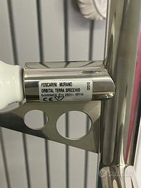 Vendo favolosa lampada da terra Orbital terra specchio Limited edition. Del designer Ferruccio Laviani, Orbital non è una semplice lampada da terra, ma un oggetto illuminante che arreda con la forza di una scultura. Realizzata con una struttura a treppiede in metallo cromato, asta centrale sempre in metallo cromato, da cui si dipartono cinque braccetti i quali sorreggono altrettanti specchi di forme e dimensioni diverse e irregolari. Orbital è un elemento decorativo che risalta e fa risaltare l’ambiente in cui viene inserito, sia esso classico o di design moderno o contemporaneo. Diffusione luce tramite attacco E14 x n.5 lampadine led. (lampadine non incluse) Accensione e spegnimento tramite interruttore on/off a pedale. Misure : lato 53x53cm. H.170cm. Design, qualità esclusivamente Made in Italy. ( ditta Foscarini )