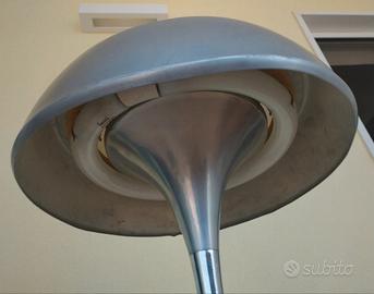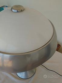Lampada a fungo da tavolo. Vintage. Design stile Goffredo Reggiani. Prodotte in Italia tra gli anni '60 e '70. Struttura in metallo cromato e calotta opalina. Illuminazione neon bianca