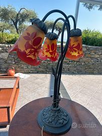 Lampada da tavolo con base in ferro lavorata originale Gallè , perfette condizioni . Richiesta Euro 750,00.