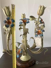 bellissima lampada Gianfranco Ballerini in legno e ferro battuto realizzata a mano nuova con cartellino