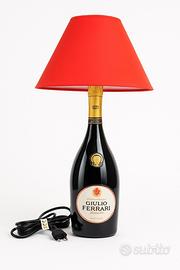 Ferrari TrentoDoc 0,75 L, recuperata e trasformata a mano con cura artigianale: ogni segno del vetro e il riflesso scuro della champagnotta sono valorizzati, mentre l'etichetta è preservata come dettaglio di stile.
