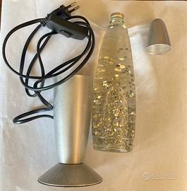 Lampada con effetto movimento luce dato dai glitter contenuti nella parte centrale di vetro.