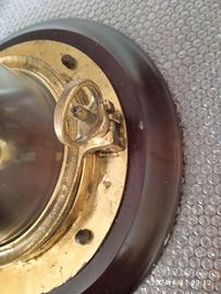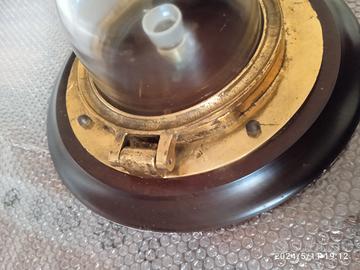 Lampada, grande plafoniera marinara realizzata con parti originali di bordo, pezzo d'epoca unico, diametro base 40 cm, altezza 21 cm. Acquistata negli anni '70 in negozio specializzato in antiquariato marinaro.