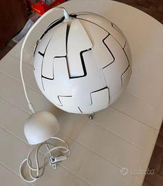 Lampada a sospensione IKEA PS 2014, colore bianco/argento, apribile con i due cordoncini inferiori per modificare la forma e l'intensità luminosa.