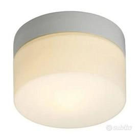 Lampada idonea per installazione in bagno in ceramica bianca e vetro smerigliato bianco inclusiva di lampadina da 25W. Nuova, mai usata, ancora confezionata.
