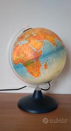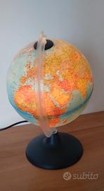 Lampada notturna "Il Globo" per bambini/ragazzi, diametro 25 cm, circonferenza 63 cm, altezza 30 cm. Presenta una base robusta e una stampa chiara e dettagliata che può essere usata come strumento didattico.
