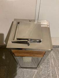lampada in acciaio e legno con cero maxi da arredo altezza 80 cm larga 32 cm profonda 3o cm . Apertura frontale per cambio cero . Presa s