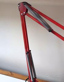 Lampada di colore rosso in acciaio con pieghevole ed orientabile con doppio snodo.