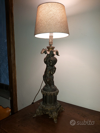 Lampada in bronzo altezza circa 60 cm (il corpo escluso cappa) e smontabile. Impianto elettrico rimovibile qualora si desideri ripristinare oggetto come candelabro. La scultura è molto curata e pregiata e conserva tutta la patina dell'antico essendo sempre stata pulita adeguatamente.
