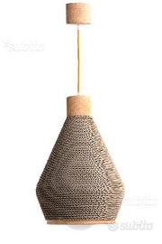 Un linea morbida ed elegante che rimanda a luoghi lontani. Queste lampade sono realizzate in cartone e sughero tornito, materiali eco-sostenibili e riciclabili.