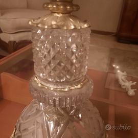 Preziosa lampada da tavolo austriaca in cristallo di Boemia con struttura in bronzo dorato intagliato, vintage anni 50. Manca la cupolina ma si può sostituire con un bel paralume. Il prezzo tiene conto di questo.