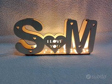 Le nostre lampade in legno a led personalizzate vengono incise a laser. La realizzazione dei nostri prodotti artigianali rende questo prodotto unico e diverso dai soliti regali, ricreando un ambiente amorevole in ogni angolo della tua casa. La luce led viene installata all'interno della struttura e la sua concezione rende la lampada un'ottima compagnia per la notte per illuminare la stanza con una luce delicata. Scegliete in nome che più fa per voi e se avete esigenze particolari di qualche logo in particolare potete fornire direttamente voi il file, diversamente con un piccolo supplemento possiamo crearne noi la grafica.