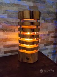 Vendo lampada in legno artigianale compresa di lampadina vintage, perfettamente funzionante.