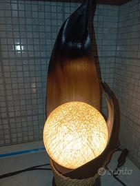 lampada fatta con foglia di banana essiccato e trattata e la palla sopra con fili intrecciati di cocco
