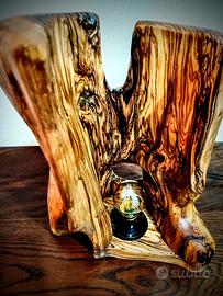 Questa lampada in ulivo toscano è un piccolo capolavoro di legno vivo, nato dalle mani pazienti di chi sa ascoltare gli alberi.