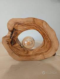 - Lampada da tavolo con struttura in legno.