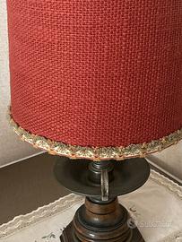 Lampada in legno e ottone con paralume in stoffa
